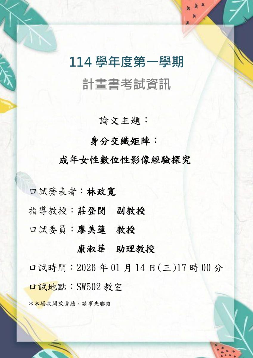 • 口試委員:廖美蓮  教授、康淑華 助理教授